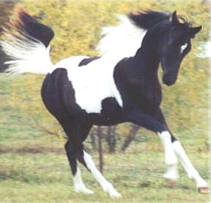 Because of its dominant characteristics, experts in the field of genetics have known for years that it is possible to breed the popular tobiano spotting pattern into the Arabian breed to produce a "relatively pure" strain of tobiano horses with over 99% Arabian blood (also known as the Pintabian!). As you may already know, the purebred Arabian horse does not come in the tobiano pattern. Also, because of the genetic make-up of the tobiano gene, at least one parent must be a tobiano in order to produce a horse with tobiano markings. The Pintabian breed was developed by continually crossing tobianos back to purebred Arabians, and in order to be eligible for registration in the Pintabian Horse Registry, horses must be over 99% Arabian in blood.